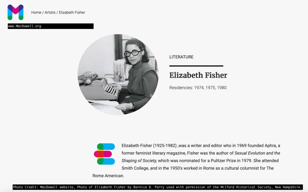 The image below is a screenshot from the MacDowell website: www.macdowell.org. Photo by Bernice B. Perry. Used with permission from the Milford Historical Society, New Hampshire. By the way, Bernice Blake Perry (March 2, 1905 – July 10, 1996) was an American pilot and photographer and the first woman to earn a pilot’s license in New Hampshire.